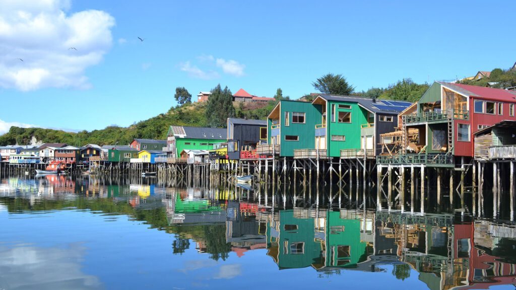 Nestled in the wild southern coast of Chile, the Chiloé Archipelago is famous for its unique wooden churches (many UNESCO-listed) and colorful palafitos (stilt houses). The island’s misty, rolling hills and dramatic coastline are home to diverse wildlife, including playful sea otters and dolphins. Board a day cruise to sail past the mountains, green islands, and rocky outcrops that are home to sea lions.