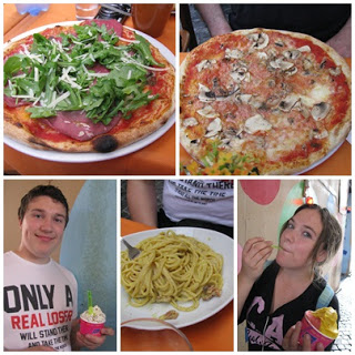 We headed down one of the little alleyways and decided “When in Rome…..” So we enjoyed pasta, pizza and gelato for dinner!