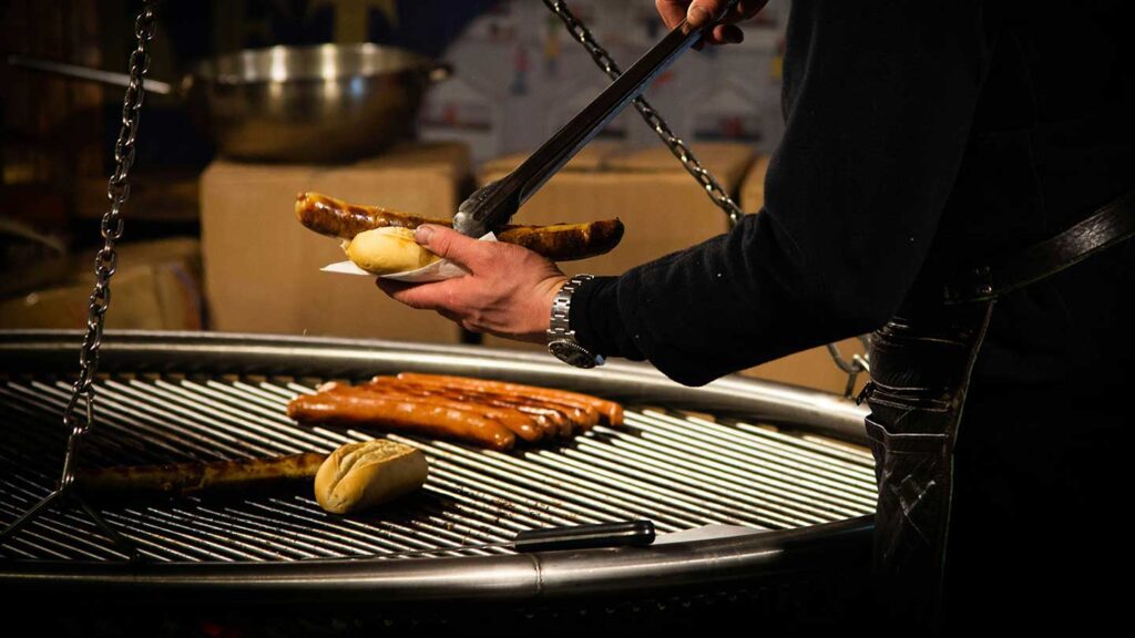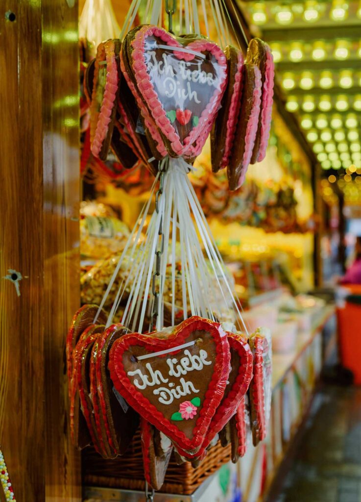 Besides street food, which we’ll talk about below, you’ll also find stalls run by local producers who sell delicious treats and souvenirs such as jams, chutneys, local cheese, cured meats, and spices. You’ll also see the famous Lebkuchen (Gingerbread) cookies and hearts that you can take home as an edible souvenir.