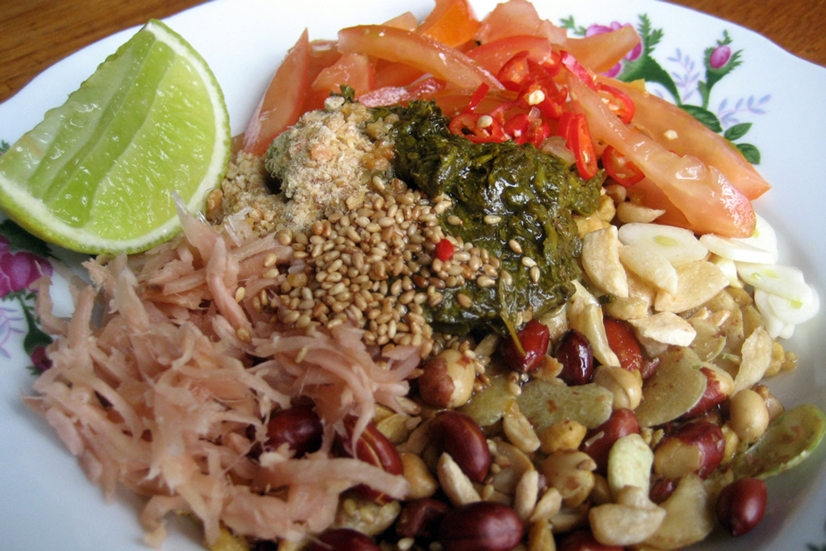 Fermented tea salad? It may sound like an acquired taste but there’s a reason laphet is Myanmar’s national delicacy. Bittersweet, fermented tea leaves are served alongside dried prawns, peanut, garlic and tomatoes, but separately as series of individual components so you can pick n mix them together to achieve umami perfection. A dish with a long heritage, in ancient times laphet was served as a peace offering between warring kingdoms.