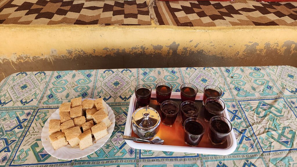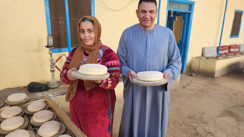“Trafalgar guests visit the village of Qurna and get connected with the community. Here we share hot tea with mint and freshly baked authentic sun bread with a local family at their countryside residence whilst they regale guests with their fascinating stories of daily life.” – Assem