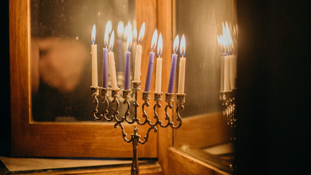 Many Jewish families light a menorah on Hanukkah, a candelabra with eight wax candles. One is lit each night over eight nights. Some traditions require women of the house to rest until the candles have burnt for half-an-hour or completely out. Some families avoid using technology during this time of togetherness, while others might watch Hanukkah TV specials.