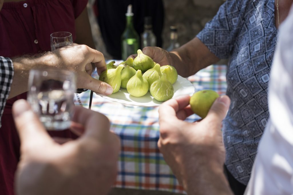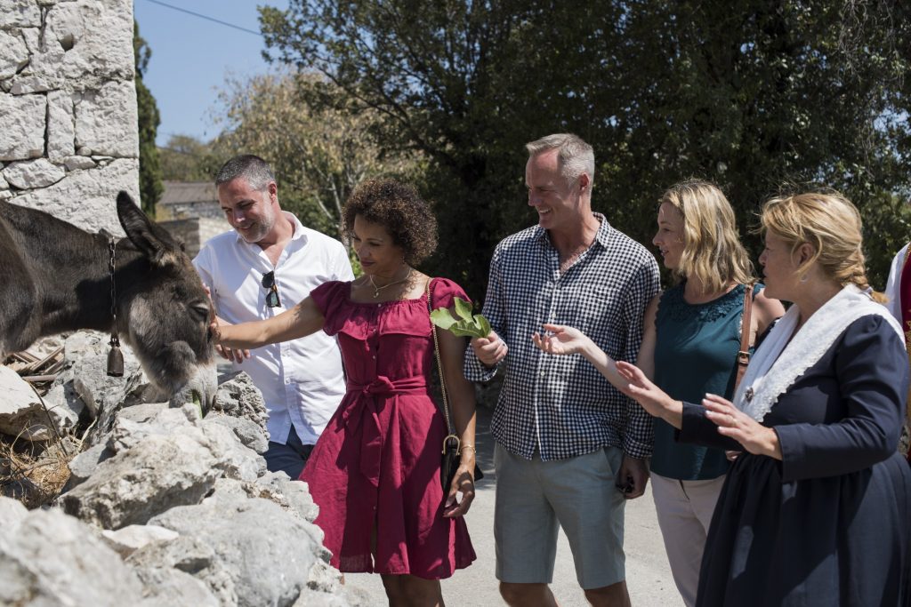 After a tour of the village, still bearing scars of war, guests find themselves on the sun-drenched terrace, then later under their beautiful arches and vaulted ceilings of the family’s centuries old home. Anton and Marija, under the watchful eye of Grandmother Muhoberac, will prepare their favourite dishes including zelena menestra (dish of cabbage, potatoes and smoked ham and sausages), different sorts of meat roasted under an iron bell (the famous Croatian peka). Dried figs, carobs, homemade liqueurs and Anton’s home-made wine complete the scene, with everything being farmed from their land.