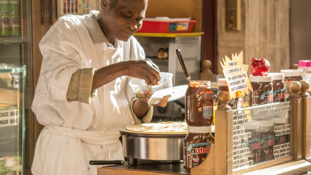 A romantic evening stroll along the Seine can only be improved with a decadently sweet Nutella-filled or lemon sugar French crêpe. Unlike other Paris street food, crêpe stalls are fairly reliable for quality. Look for stalls that pour the batter fresh before your eyes and cook the crepes while you wait. If you always like to visit the most famous spot, seek out the green kiosk of Crêperie de St-Germain where you join the never-ending queue.