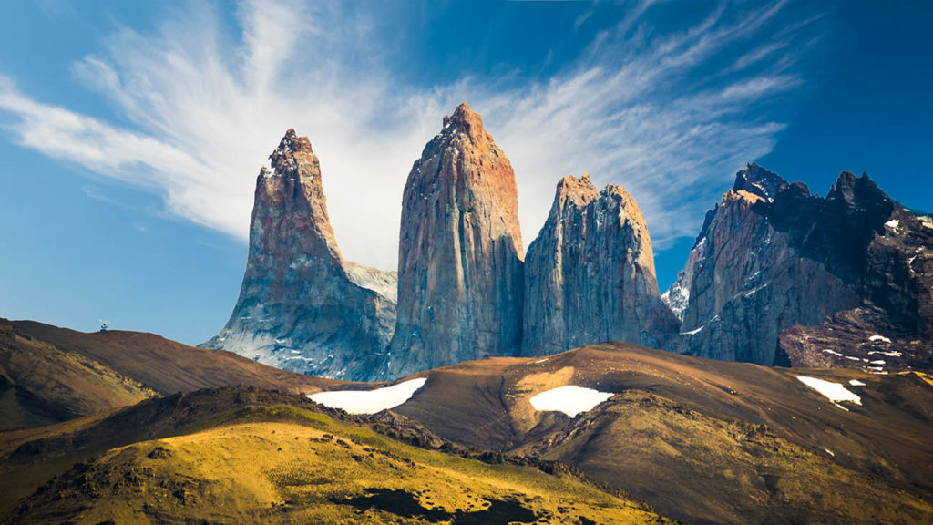 The Torres Del Paine, or Towers of Paine, are three giant granite pillars that stand 2,800 metres above the Patagonian Steppes in the UNESCO-listed Torres del Paine National Park. Also known as Cleopatra’s Needles, these jagged spikes are thought of as the jewel in Patagonia’s crown and are surrounded by shimmering blue lakes, roaring creeks and cascading waterfalls. Nature at its very finest and perfect for hikers with a sense of adventure.