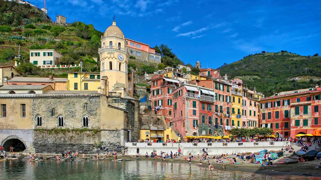 If your summer 2022 holiday only has time for one day in Cinque Terre, make sure to include Vernazza. With little boats bobbing in the harbour, a small beach, colourful buildings running out to the seafront and an interesting tower, Vernazza is a must-see village with a bit of everything.