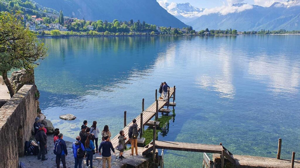 This whole area is like the Swiss Riviera. There’s lots of beautiful flowers, especially if you go further up the coast. Where our guests stand for their picture, if you look one way you look straight into the French Alps and on the other side the Swiss Alps. If it’s a day where you’ve got the sun, with a bit of snow and the flowers, it really becomes very colourful.