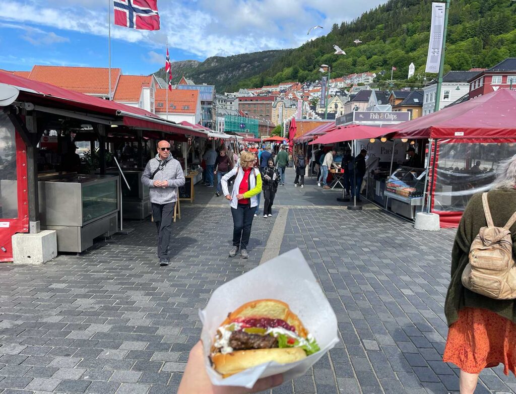 I’ll go up the funicular with the guests then venture back down to town leaving everyone to enjoy the town and get lunch at their leisure. I usually go to the markets and get a moose burger or reindeer burger. In Norway they eat reindeer and moose, so it’s a regular burger but the meat is different and a bit more gamey. There’s an old guy with his burger stand at the market – you can’t miss it.
